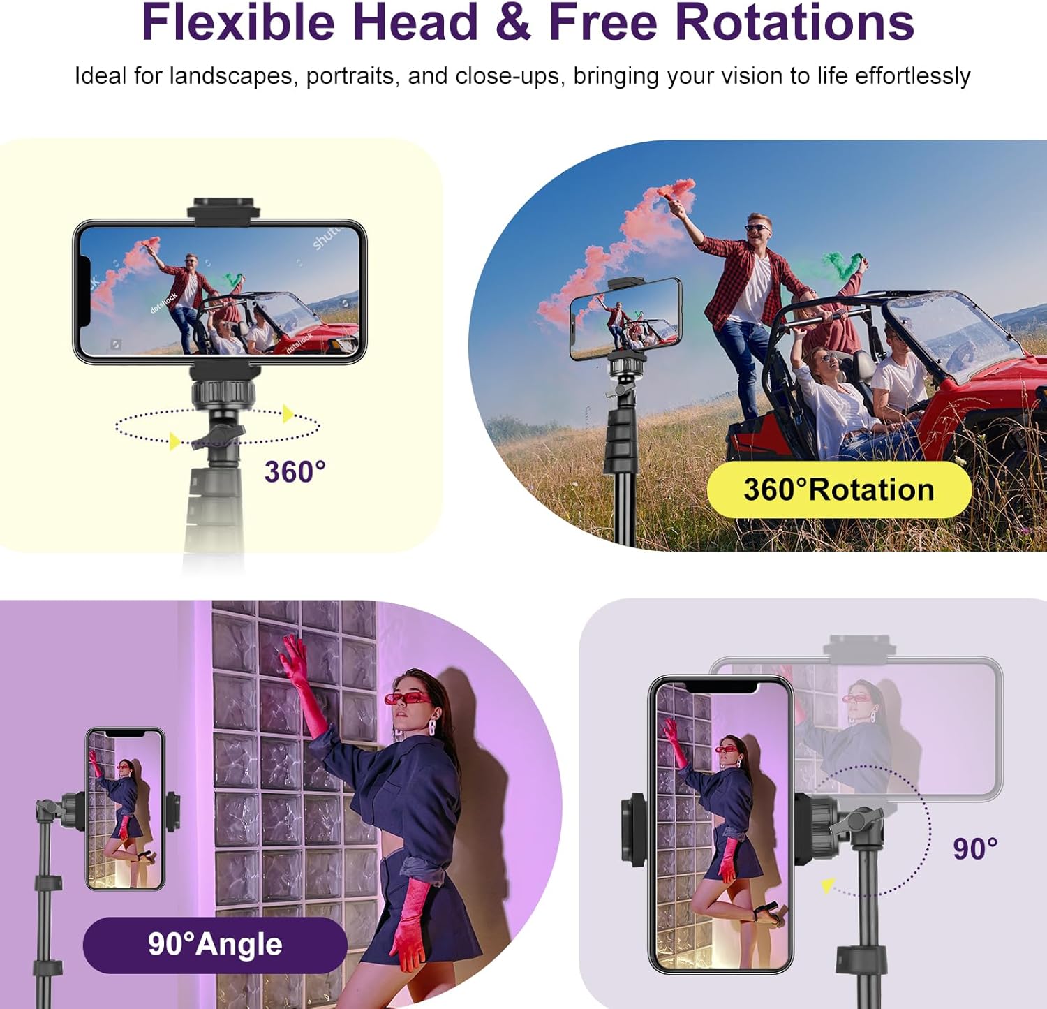 UBeesize 62″ Phone Tripod & Selfie Stick, Camera Tripod Stand with Wireless Remote and Phone Holder,Compatible with iPhone Android Phone, Perfect for Selfies/Video Recording/Live Streaming Black